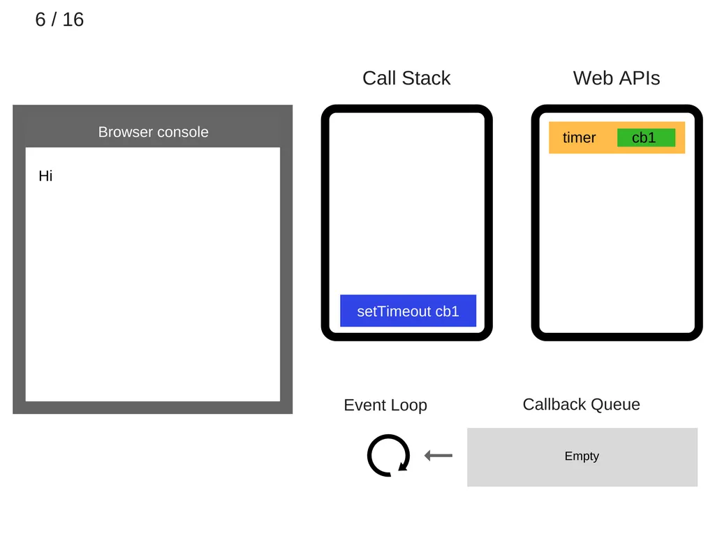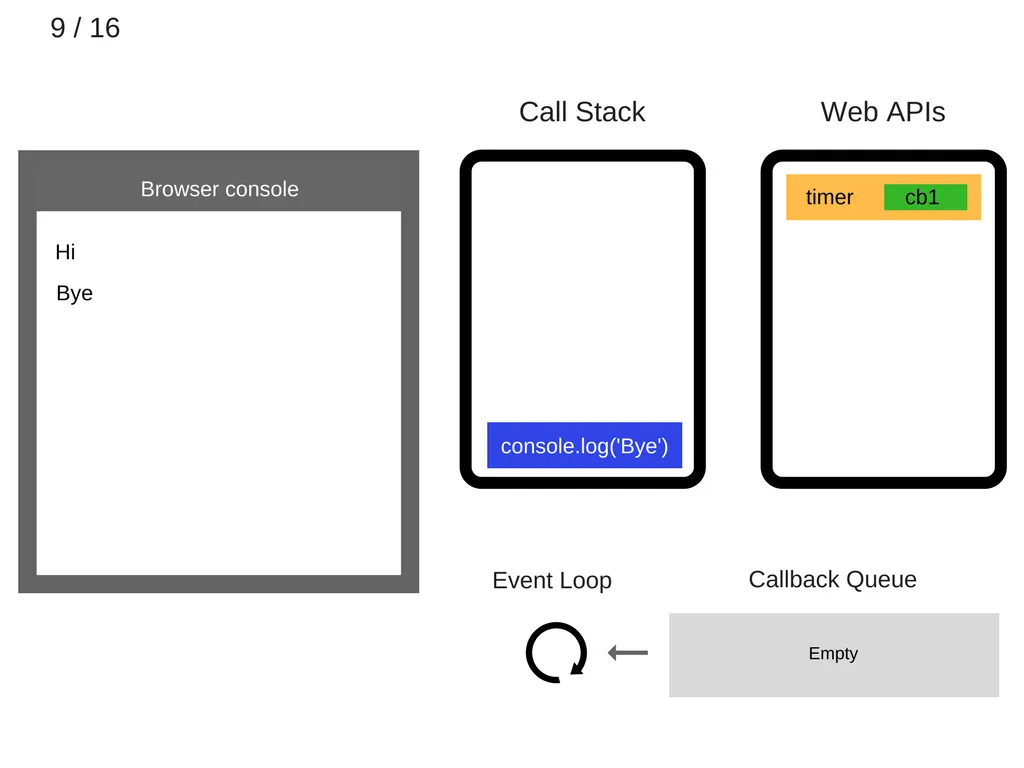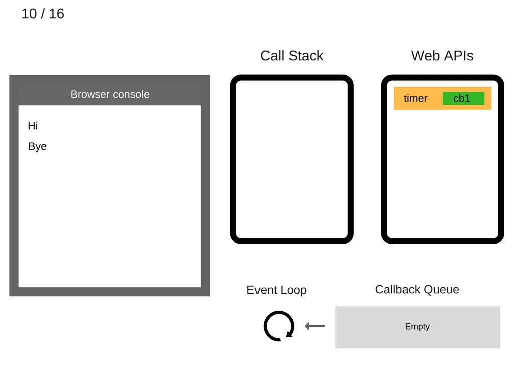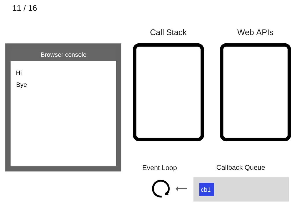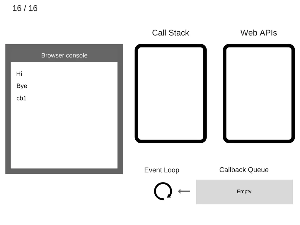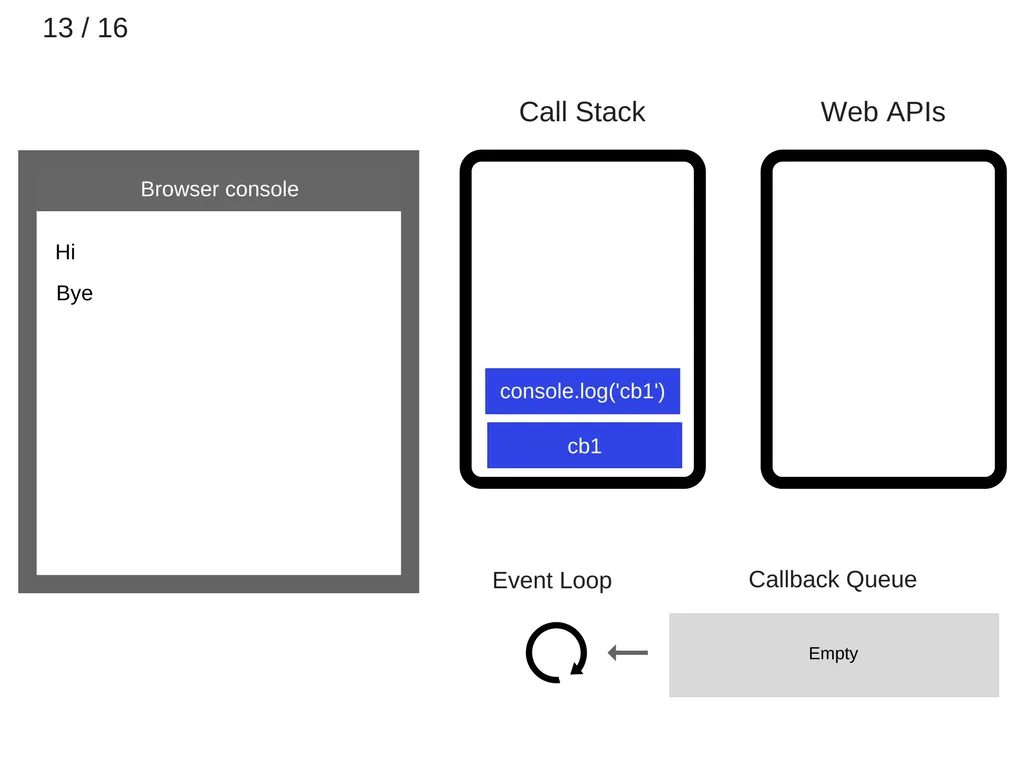 console.log(’cb1’)가 종료되고, call stack에서 제거된다.