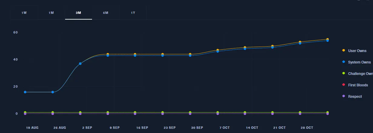 여기서 주의할 점은 Writeup을 읽으며 막힘없이 공부하다 보면 일종의 반복 작업처럼 느껴져 번아웃이 올 수 있다는 것이다. 이를 방지하기 위해 일주일에 두 번 정도는 Active Machine을 풀면서 문제 해결이 무의미한 작업으로 느껴지지 않도록 했다.