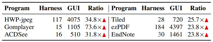 GUI 프로그램은 로드할때 GUI 초기화 시간으로 인해 overhead가 심하다.(위의 TABLE 을 보면 실행속도가 하네스와 비교해 최대 73배까지 차이가 난다.)