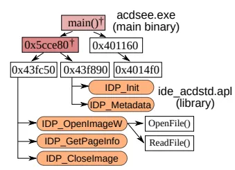 위의 사진은 ACDSee라는 뷰어의 main binary call-graph인데, 0x5cce80 주소의 함수는 파일 관련 API와 핸들 함수의 LCA이면서 충족 조건을 만족한다. 만약 LCA가 충족 조건을 만족하지 않는 경우 LCA의 조상(여기서는 main)을 fallback 함수로 지정한다.
