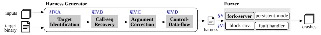 Binary만을 가지고 Static, Dynamic Analysis 모두 사용해 하네스를 자동으로 생성.